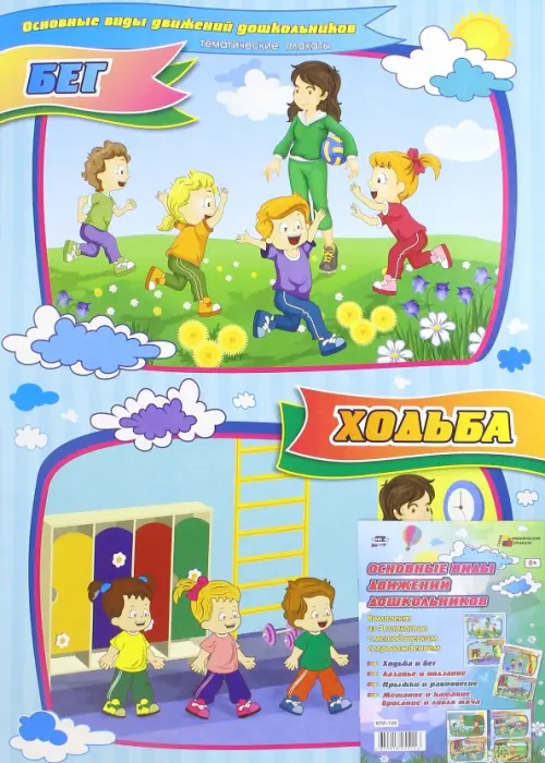 Комплект "Основные виды движений дошкольников"состоит из 4 плакатов с методическим сопровождением: