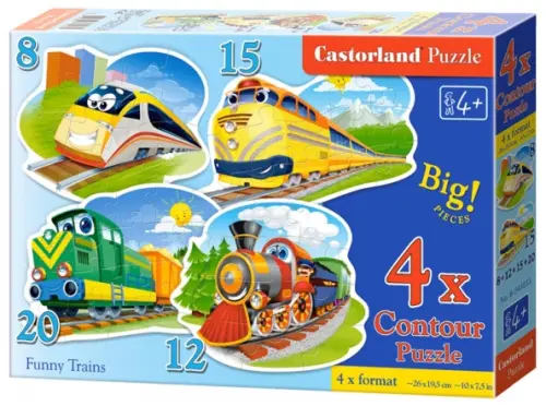Пазл. Забавные паровозики, 8, 12, 15, 20 элементов