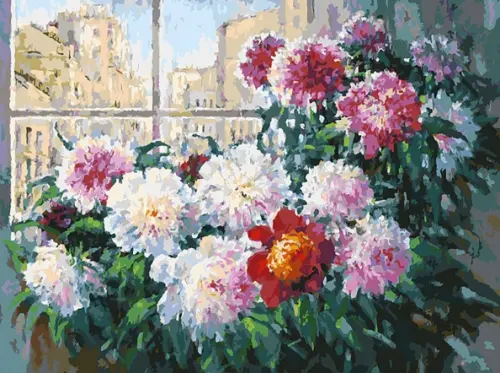 Живопись на холсте. Свежесть утренних пионов, 30х40 см