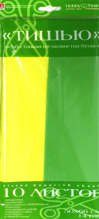 Если вы обнаружили ошибку в описании товара «Бумага цветная "Тишью", желтый, ярко-зеленый, 50х66 см», то выделите её мышкой и нажмите Ctrl+Enter. Спасибо, что помогаете нам стать лучше!