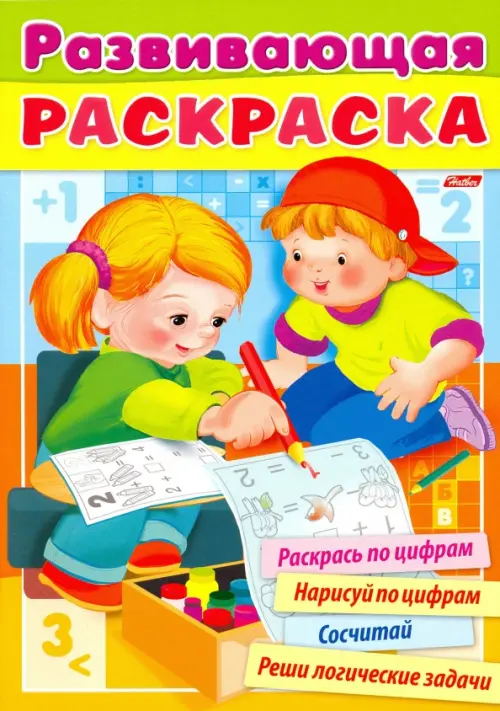 Развивающая раскраска для детей с логическими задачками и заданиями на счет.