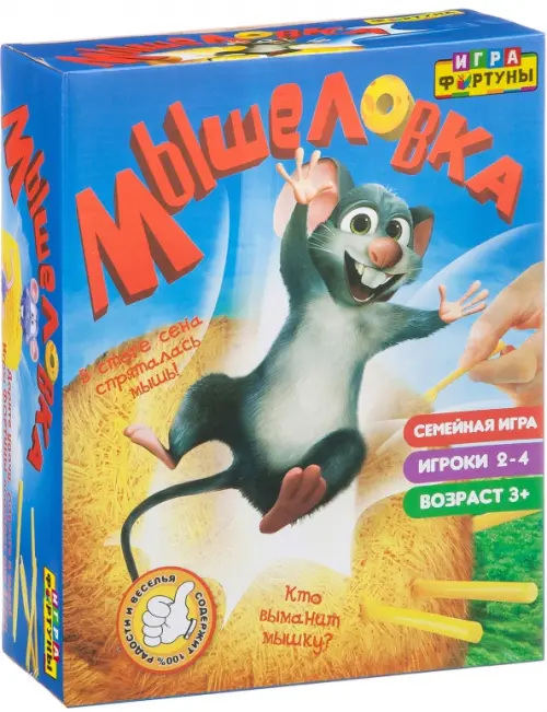"Мышеловка" от компании "Фортуна" - это настольная игра, в которую можно играть всей семьей. Игра действительно увлекает, а суть ее в том, чтобы выманить мышку из стога сена. Для того, чтобы мышь показалась каждый игрок по очереди втыкает в стог сена небольшие палочки, побеждает тот, кто сможет своей палочкой выманить мышь.