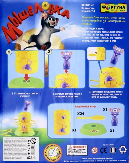 Состав: подставка, стог, мышка, вилы, правила игры.