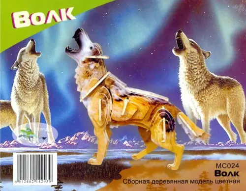 Сборная деревянная модель, цветная. Волк