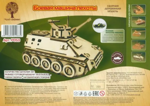 Востребованный вариант для сборки приготовил бренд "ВГА" в серии "Наземная техника". Предлагаемая деревянная модель боевой машины пехоты после соответствующей окраски прекрасно подойдет для домашней игры в солдатики. Собирать лучше в присутствии взрослого и заранее запастись наждачной бумагой и клеем ПВА. Упаковка прочная, симпа...