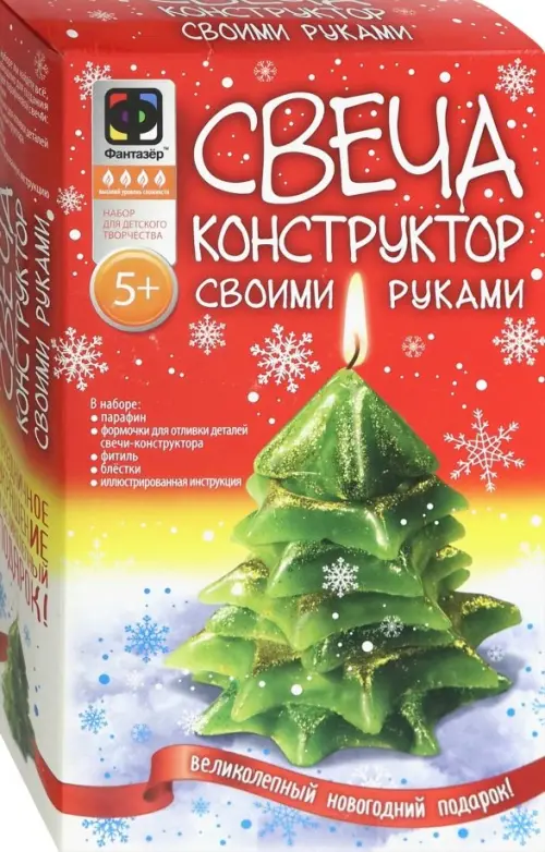 Состав набора: парафин, формочки для отливки деталей свечи-конструктора, фитиль,блестки, иллюстрированная инструкция.