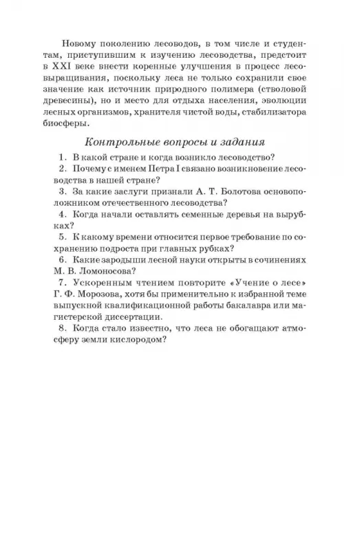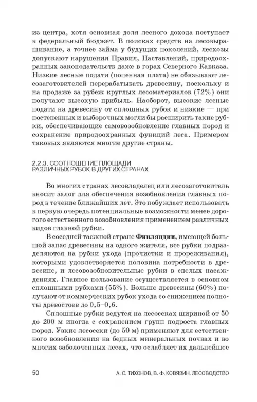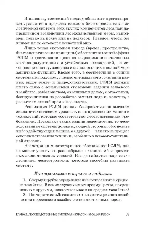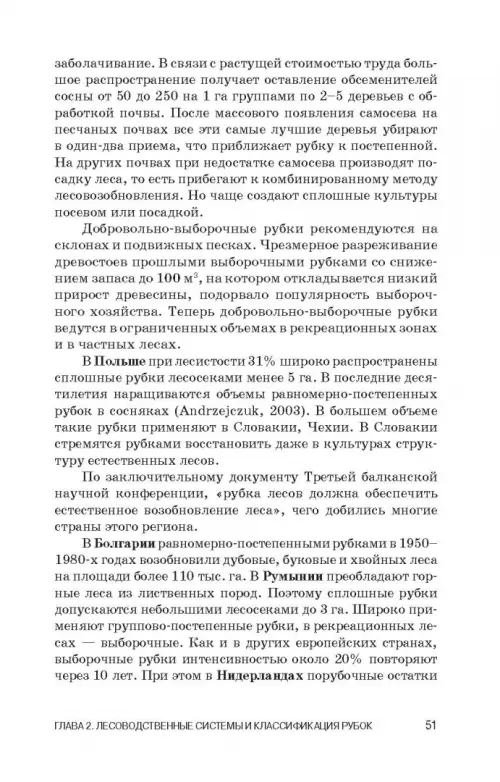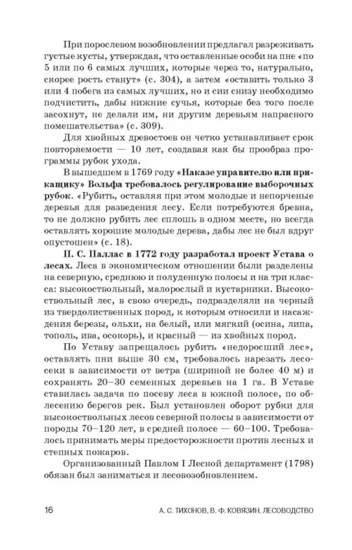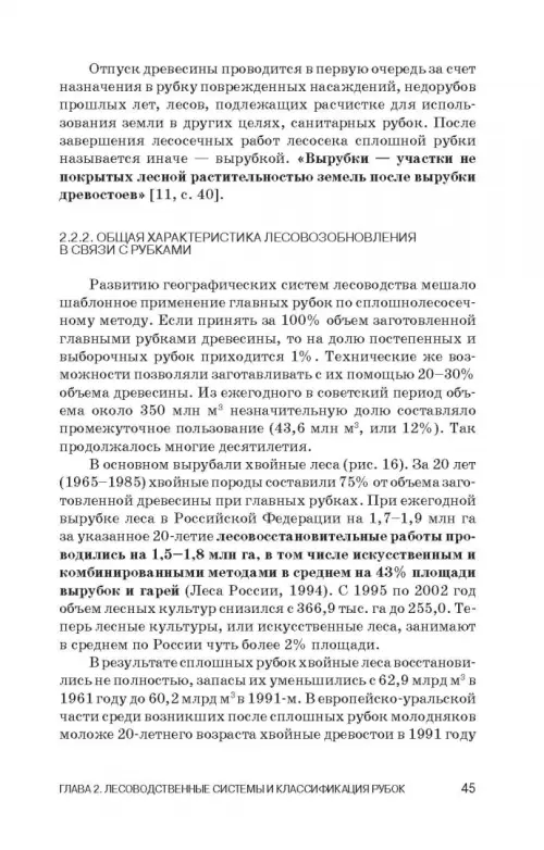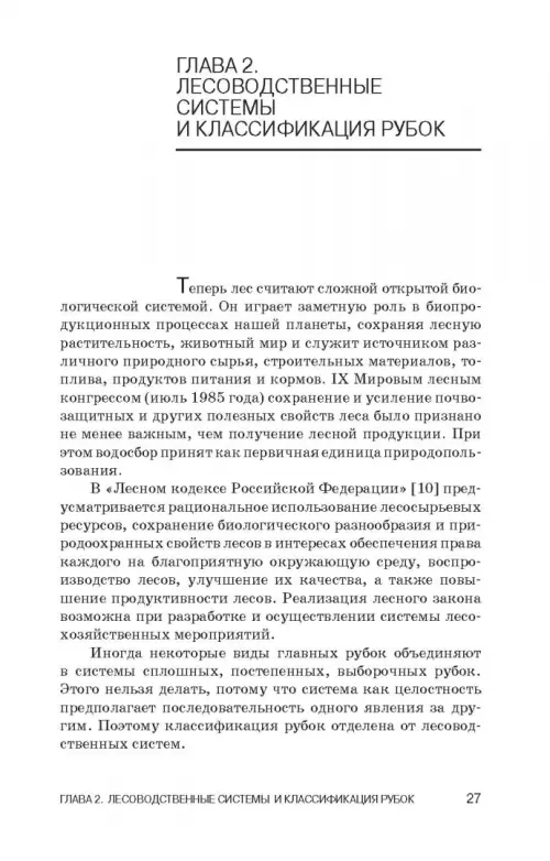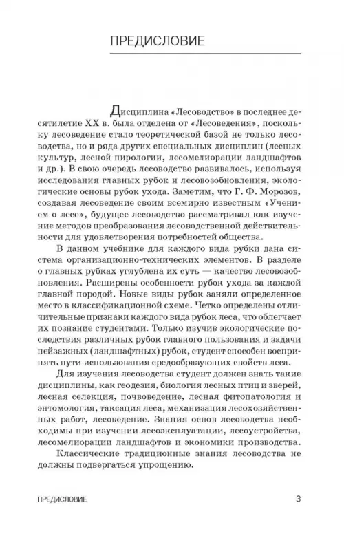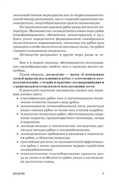 В учебнике излагается теория и практика рубок спелых и перестойных насаждений, рубок ухода, комплексных рубок, сообщаются сведения о других мероприятиях по уходу за лесом, пути комплексного использования свойств леса, решение проблемы продуктивности и устойчивости леса. Отражены официальные документы, последние достижения науки и передового опыта в нашей стране и за рубежом. Предназначается для студентов высших учебных заведений направлений «Лесное дело» и «Землеустройство и кадастры». Гриф: Рекомендовано УМО по образованию в области лесного дела в качестве учебника для студентов вузов по направлениям 35.03.01 — «Лесное дело» и 21.03.02 — «Землеустройство и кадастры».