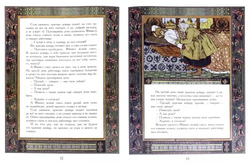 Перед вами русская народная сказка — «Пёрышко Финиста ясна сокола», иллюстрации к которой выполнил замечательный русский художник Иван Яковлевич Билибин (1876—1942). Страстное увлечение Билибина старинным русским искусством отразилось в его иллюстрациях к народным сказкам. Билибинскому стилю свойственна красота узорного рисунка и изысканная декоративность цветовых сочетаний. Художник надеялся, что «...под влиянием увлечения минувшей красотою... создастся наконец новый русский стиль, вполне индивидуальный и не мишурный». Детские книги, проиллюстрированные художником, оказали огромное влияние на оформительскую культуру своего времени, и на долгие годы восприятие русской сказочности стало во многом билибинским.