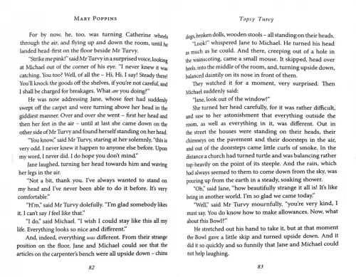 Mary Poppins returns to Cherry Tree Lane and adventures are sure to follow! The second book in the original Mary Poppins series. On sailed the curious figure, its feet neatly clearing the tops of the trees. They could see the face now, and the well-known features - coal-black hair, bright blue eyes and nose turned upwards like the nose of a Dutch doll. The figure drifted down between the lime trees and alighted primly down upon the grass. "Mary Poppins, Mary Poppins!" they cried, and flung themselves upon her.