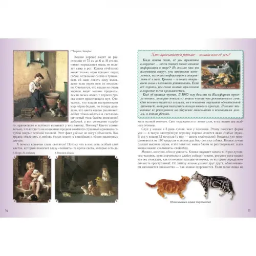 Прекрасная книга! Интересные иллюстрации! 140 шикарно оформленных страниц - здесь есть все: история происхождения кошек и собак, изображение этих животных в искусстве, характер и повадки. Очень хорошее издание, а главное - эта книга будет интересна и родителям, и детям.