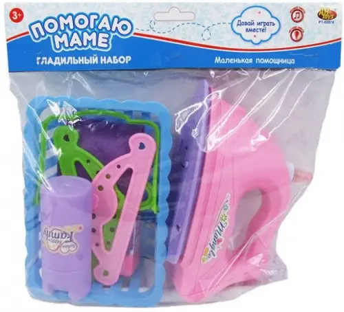 Комплектация: утюг, корзина, коробочка, 2 вешалки, бутылочка, ткань.
