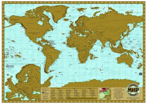 Именно это мы и предлагаем вам сделать - возьмите монетку и сотрите золотистый слой с тех стран, где вы уже побывали, и создайте уникальную карту своих путешествий. Под золотистым слоем скрывается подробная политическая карта мира.