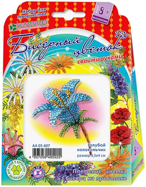 Восхитительный набор для детского творчества "Цветок из бисера" позволит маленьким умельцам собрать невероятно красивый голубой колокольчик. И все, что понадобится детям для создания шедевра, это набор бисера и гибкая проволока. Следуя подробной инструкции, ребенок сможет самостоятельно сотворить прелестный цветок, который станет необычным украшением интерьера любой комнаты или приятным подарком в стиле хэнд мэйд.