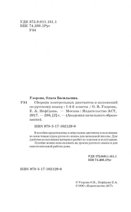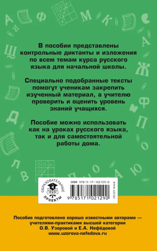 Ольга Узорова: «Интернет не научит детей мыслить»Если вы обнаружили ошибку в описании товара «Русский язык. 1-4 классы. Сборник контрольных диктантов и изложений» (авторы: Нефёдова Елена Алексеевна, Узорова Ольга Васильевна), то выделите её мышкой и нажмите Ctrl+Enter. Спасибо, что помогаете нам стать лучше!