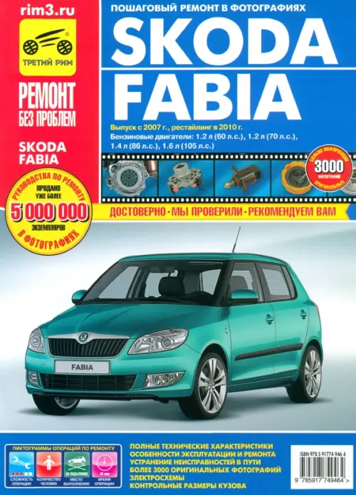 Предлагаем вашему вниманию руководство по ремонту и эксплуатации автомобиля Skoda Fabia (выпуск с 2007 г. рестайлинг в 2010 г.) с бензиновыми двигателями объемом 1,2, 1,4 и 1,6 л. В издании подробно рассмотрено устройство автомобиля, даны рекомендации по эксплуатации и ремонту.