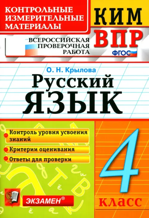 Если вы обнаружили ошибку в описании товара «ВПР КИМ. Русский язык. 4 класс. ФГОС» (авторы: Крылова Ольга Николаевна), то выделите её мышкой и нажмите Ctrl+Enter. Спасибо, что помогаете нам стать лучше!