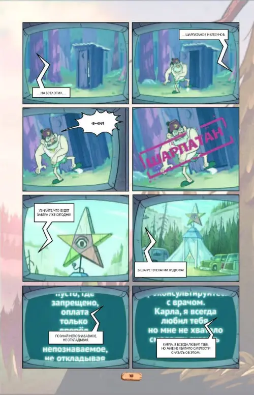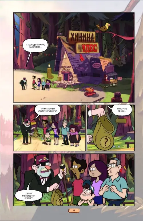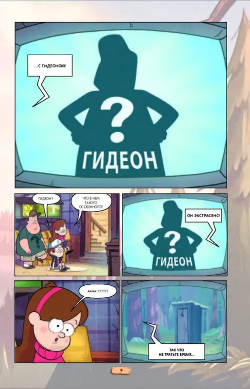 Графический роман «Гравити Фолз» — настоящая находка для любого из десятков тысяч фанатов МЕГАПОПУЛЯРНОГО анимационного сериала, который идет на телеканале Disney. Сюжеты 4, 5 и 6 серий первого сезона в формате комикса порадуют и тех, кто давно и серьезно «подсел» на истории о приключениях Диппера и Мэйбл, и тех, кто только знакомится с ними.