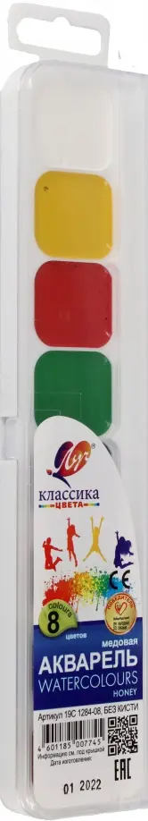 Краски акварельные «Классика» медовые полусухие изготовлены на основе органических пигментов и натурального связующего с добавлением пчелиного мёда, находятся в пластмассовой упаковке с прозрачной крышкой. Акварель предназначена для детского творчества и различных живописных работ.