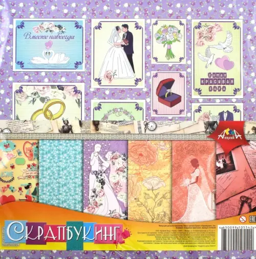 Набор для детского творчества. Набор цветной бумаги "Скрапбукинг" 12 листов. В наборе 12 листов размером 295х295 мм, плотность бумаги 150 г/м2. На бумаге с двух сторон напечатан разные рисунки. В каждом наборе 12 дизайнов (по 2 листа каждого), объединенных одной темой. В ассортименте 6 тем: Наш малыш, Романтика, Путешествия, Природа, Отпуск, Свадьба. Бумага предназначена для декорирования альбомов для фотографий, создания открыток. Упакованы в ПЭТ пакет.