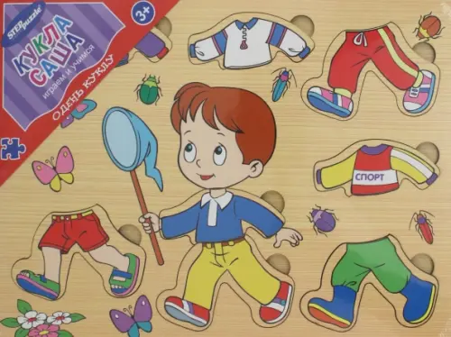 Игра "Одень куклу. Кукла Саша" - развивающая игра из дерева, в которой дети смогут по-разному комбинировать одежду у куклы.