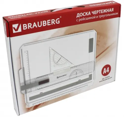 Доска чертежная с рейсшиной и треугольником, А4, 370х295 мм