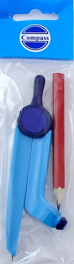 Циркуль пластмассовый с карандашом, цвет голубой. В комплекте 2 предмета: циркуль пластмассовый, 120 мм, с держателем для карандаша, чернографитовый карандаш. Надежная фиксация карандаша. В ассортименте яркие, неоновые цвета. Упаковка - ПЭТ-пакет с европодвесом.