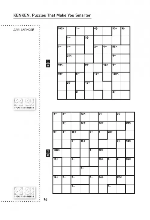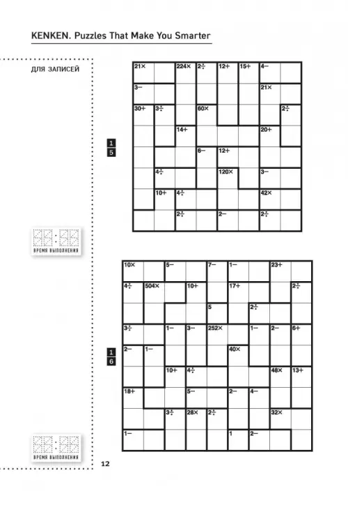 КенКен — японская система тренировки мозга, которая поможет вам улучшить память, внимание, логическое мышление. КенКен придумал педагог из Йокогамы Тэцуя Миямото. Сначала он просто хотел помочь ученикам, сделать так, чтобы на уроках им было нескучно. Но в результате изобрел интеллектуальный тренажер для мозга, который любят и знают уже 3 000 000 человек в Японии и США, Австралии и Германии, Индии и Арабских Эмиратах. "КенКен" в переводе с японского означает "мудрость в квадрате". Научно доказано, что КенКен развивает когнитивные способности у молодых и поддерживает активность мозга у людей после 30 лет. В этой книге вы найдете 300 очень трудных головоломок: 150 пазлов 8 × 8 и 150 пазлов 9 × 9. Причем пазлы 1—150 обычные, а пазлы 151—300 — без знаков математических операций.