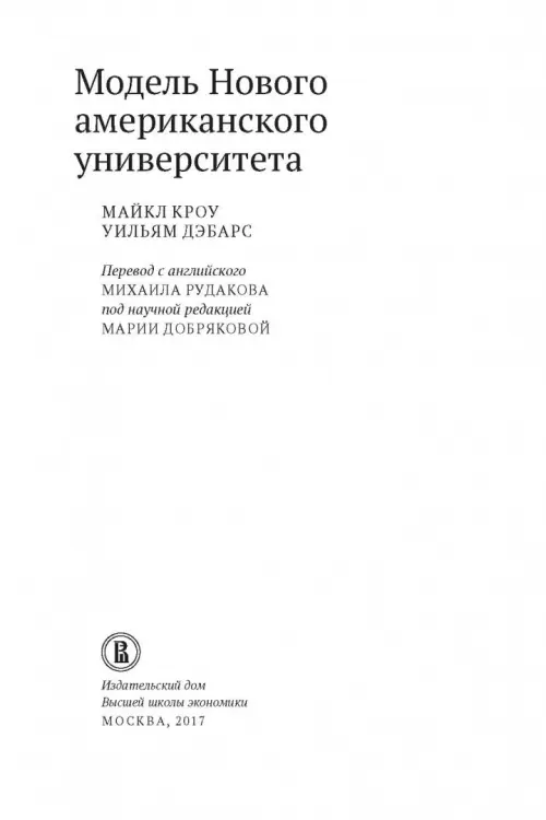 Если вы обнаружили ошибку в описании товара «Модель Нового американского университета» (авторы: Кроу Майкл, Дэбарс Уильям), то выделите её мышкой и нажмите Ctrl+Enter. Спасибо, что помогаете нам стать лучше!