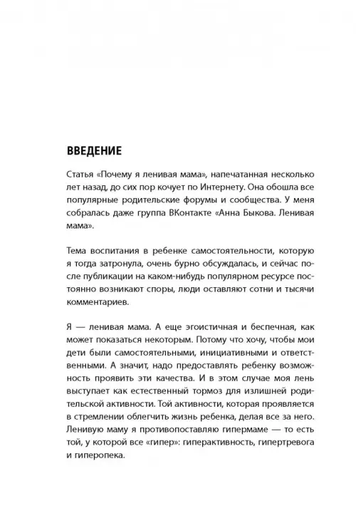 Эта книга нужна всем мамам (а также папам), настоящим и будущим. В нее вошли два бестселлера Анны Быковой из серии "Ленивая мама", которые совершили прорыв во взглядах на воспитание и роль родителей в жизни детей.