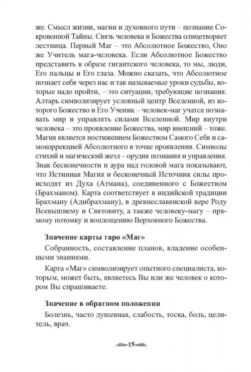 Известный маг, брахман и священник ведической веры Раокриом разработал, создал и опробовал на практике собственный вариант карт Таро, описание которых содержится в данной книге. В ней впервые изложен взгляд на Таро с позиции общей философии религий ведической группы и ведической магии. Цветные изображения карт представлены в колоде "Золотое Ведическое Таро". Данная колода предназначена всем, кто интересуется эзотерикой, в частности магией и различными гадательными практиками.
