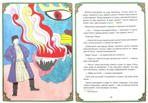 Бумага плотная, шрифт удобный для чтения, иллюстраций много, есть на весь разворот. Имеется карта, как и во всей серии "Сказки народов России", есть национальный костюм. Только непонятно, почему на карте нарисована юрта, а подписано, что это кибитка. Посмотрела в интернете, и всё-таки, это юрта, кибитка на колёсах. Сами сказки интересные,...