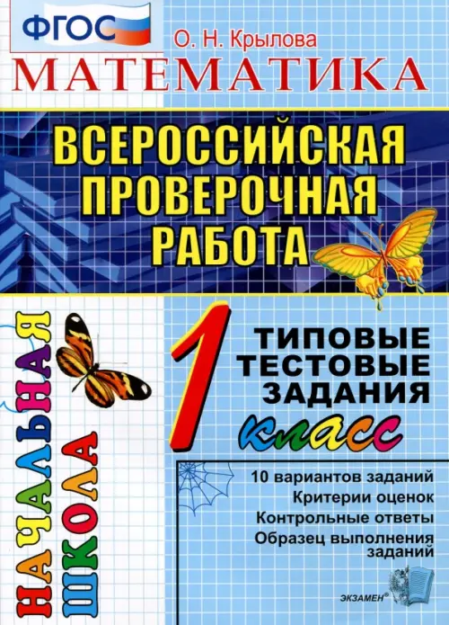 Данное пособие полностью соответствует ФГОС (второго поколения) для начальной школы. Книга содержит 10 вариантов типовых тестовых заданий Всероссийской проверочной работы за курс 1-го класса. Назначение пособия - отработка практических навыков учащихся по математике при подготовке к Всероссийской проверочной работе. Ответы к заданиям всех вариантов являются материалами для учителя, а потому даны в середине пособия и могут быть легко изъяты, что повышает объективность оценки знаний учащихся. Сборник предназначен для учащихся 1-х классов начальной школы, учителей и методистов, использующих типовые тестовые задания для подготовки к Всероссийской проверочной работе.