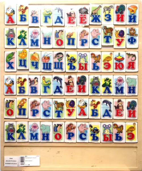 В комплекте: доска и 66 карточек с буквами (по две карточки на каждую букву).