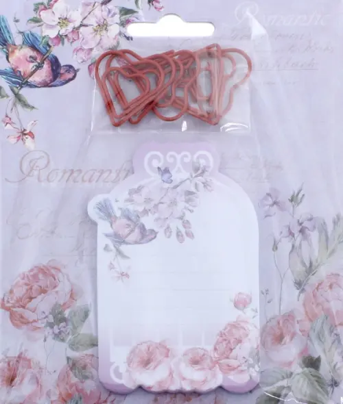 Канцелярский набор: бумага для заметок с клеевым краем (30 листов); скрепки из черного металла с ПЭТ покрытием (6 штук).