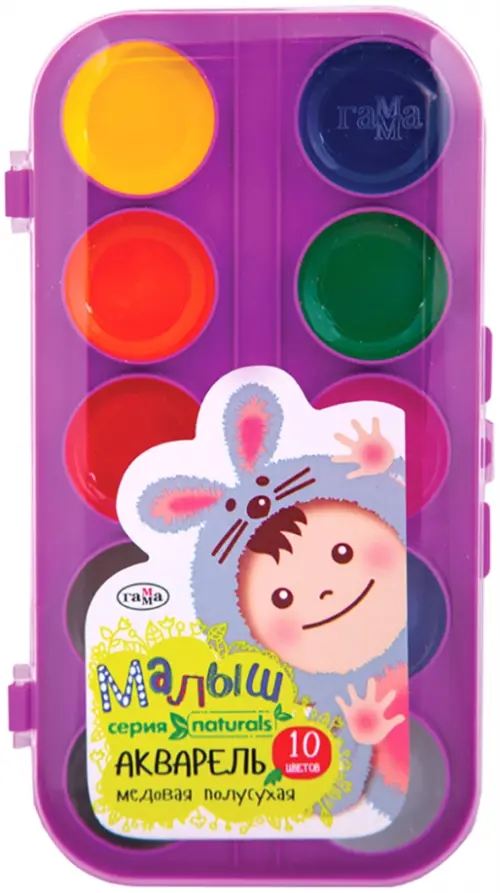 Акварель медовая "Малыш. Naturals", 10 цветов