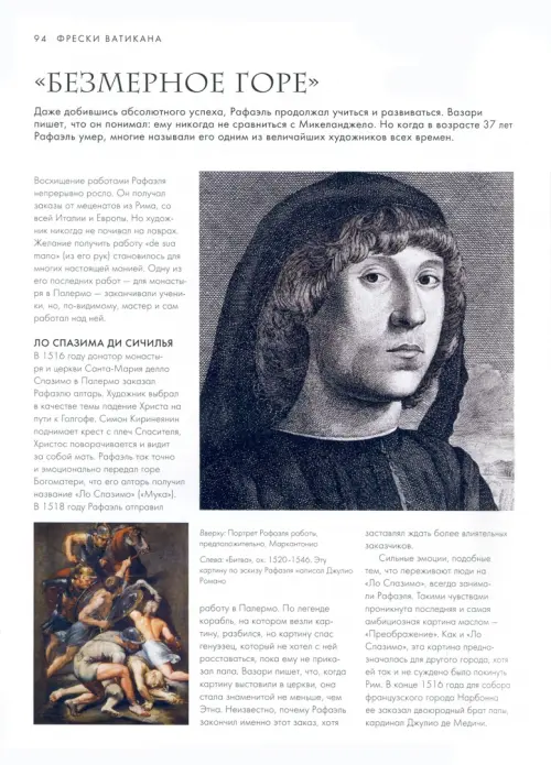 За свою короткую жизнь Рафаэль (1483—1520) успел достичь очень многого. Он имел огромную мастерскую и был любимым художником и архитектором при папском дворе в Риме. Он занимался архитектурой и археологией, успевая при этом выполнять и наблюдать за выполнением крупных и очень престижных живописных заказов. На протяжении веков стиль живописи Рафаэля считался вершиной художественного творчества. Рафаэля любили и почитали при жизни и точно так же относятся к нему после смерти. Вот уже почти 500 лет его творчеством восхищаются и не перестают ему подражать.
