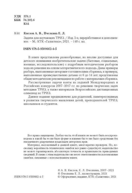 Если вы обнаружили ошибку в описании товара «Задачи для изучающих ТРИЗ» (авторы: Кислов Александр Васильевич, Пчелкина Екатерина Львовна), то выделите её мышкой и нажмите Ctrl+Enter. Спасибо, что помогаете нам стать лучше!