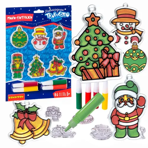 Набор из серии "Новогоднее творчество с Буки" от компании Bondibon предлагает ребенку создать оригинальные поделки своими руками. Комплект включает в себя фигурки, выполненные в виде новогодних символов, и яркие краски. Великолепные украшения, расписанные своими руками, помогут в создании атмосферы чуда и волшебства.