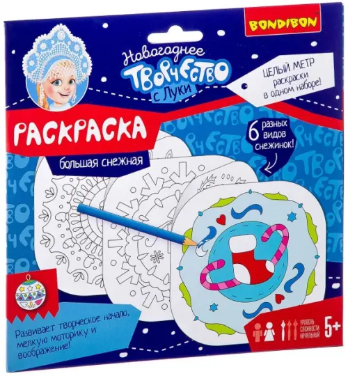 Состав набора: 100 см раскраски (6 снежинок разного уровня сложности).