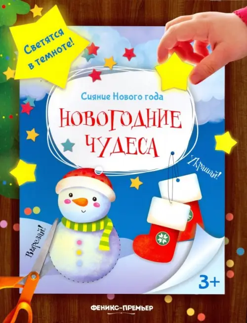 Серия «Сияние Нового года» содержит красочные заготовки для поделок, которые малыш может самостоятельно вырезать и склеить, а потом использовать в качестве подарка или украшения дома. А главное, что в каждой книжке есть наклейки, которые светятся, поэтому все сделанные игрушки и открытки будут красиво мерцать в темноте!