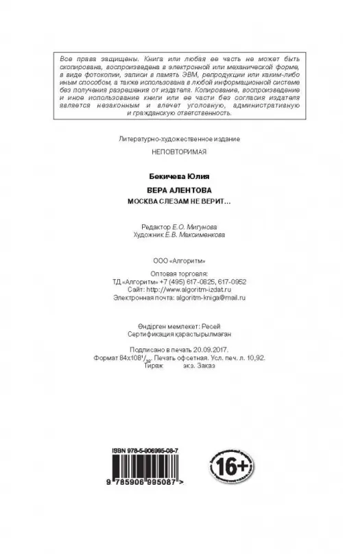 День российского киноЕсли вы обнаружили ошибку в описании товара «Вера Алентова. Москва слезам не верит…» (авторы: Бекичева Юлия), то выделите её мышкой и нажмите Ctrl+Enter. Спасибо, что помогаете нам стать лучше!