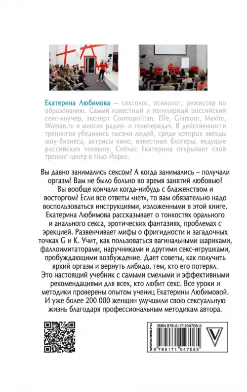 Это настоящий учебник с самыми смелыми и эффективными рекомендациями для всех, кто любит секс. Все уроки и методики проверены опытом учениц Екатерины Любимовой. И уже более 200 000 мужчин и женщин улучшили свою сексуальную жизнь благодаря профессиональным методикам автора.