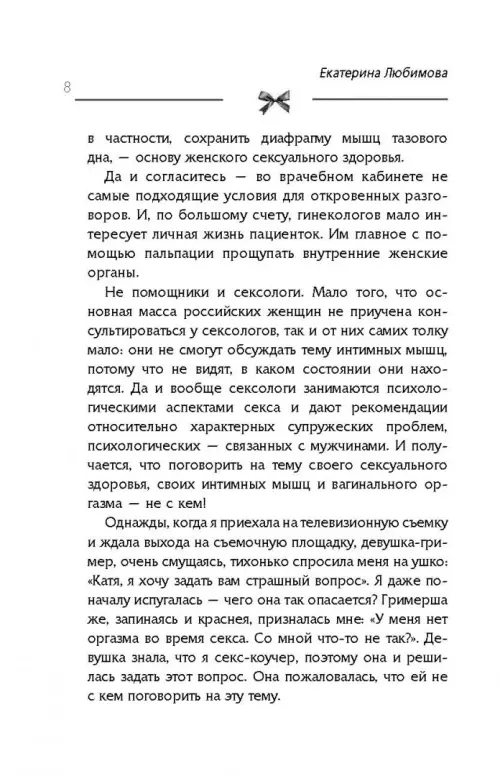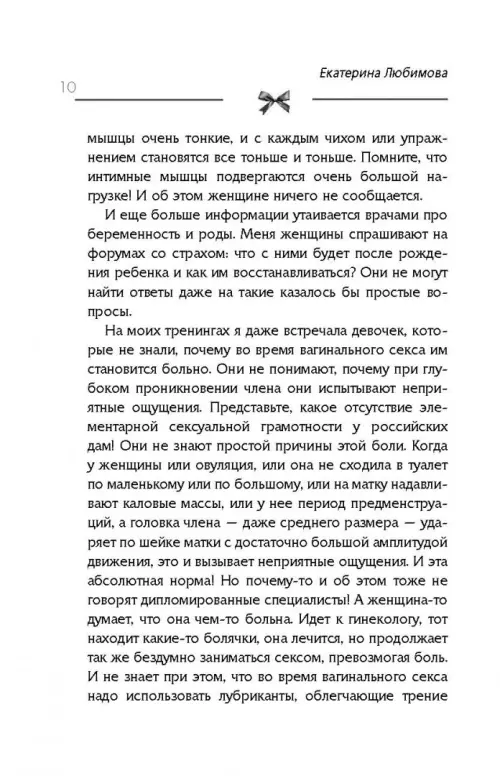 Вы давно занимались сексом? А когда занимались – получали оргазм? Вам не было больно во время занятий любовью? Вы вообще кончали когда-нибудь с блаженством и восторгом? Если все ответы «нет», то вам обязательно надо воспользоваться инструкциями, изложенными в этой книге. Ведь советы дает настоящая прима секс-коучера России Екатерина Любимова. Она – автор современной Камасутры. Поэтому ее книгу будет полезно прочесть всем: девственницам и юным «Ромео», опытным «Казановам» и «куртизанкам», невестам и женам, женихам и мужьям, и, вообще, всем парам, ищущим ярких ощущений в сексе. Екатерина Любимова рассказывает о тонкостях орального и анального секса, эротических фантазиях, проблемах с эрекцией. Развенчивает мифы о фригидности и загадочных точках G и К. Учит, как пользоваться вагинальными шариками, фаллоимитаторами, наручниками и другими секс-игрушками, пробуждающими возбуждение. Дает советы, как получить яркий оргазм и вернуть либидо, тем, кто его потерял.