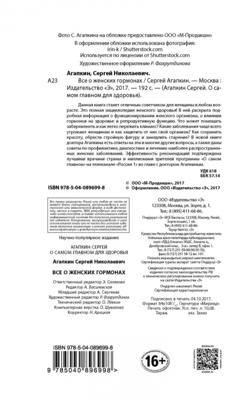 День здоровьяЕсли вы обнаружили ошибку в описании товара «Все о женских гормонах» (авторы: Агапкин Сергей Николаевич), то выделите её мышкой и нажмите Ctrl+Enter. Спасибо, что помогаете нам стать лучше!
