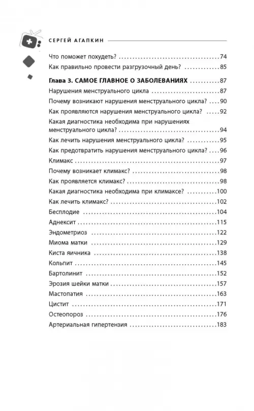 Данная книга станет отличным советчиком для женщины в любом возрасте. Это полная энциклопедия женского здоровья! В ней раскрыта подробная информация о функционировании женского организма, о влиянии гормонов на здоровье и репродуктивную функцию. Что может помешать забеременеть и как легко пережить климакс? Какие заболевания чаще всего угрожают женщинам и как защитить от них свой организм? Как сохранить красоту, обрести стройную фигуру и замедлить старение? В новой книге доктора Агапкина есть ответы на эти и многие другие вопросы, а также даны советы по профилактике, диагностике и лечению наиболее распространенных женских заболеваний. Эффективность рекомендаций подтверждена лучшими врачами страны и миллионами зрителей программы "О самом главном" на телеканале "Россия 1" во главе с доктором Агапкиным.