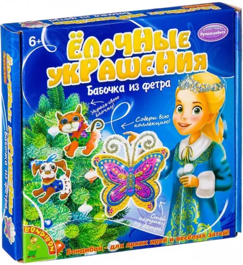 Набор для шитья из фетра "Елочные украшения" от производителя Bondibon может порадовать любителей рукоделия. С помощью предметов, входящих в комплект, ребенок сможет создать красивую фигурку бабочки. Все детали игрушки нужно сшить между собой, следуя инструкции. Ребенку можно будет украсить поделку при помощи цветного клея и других элементов декора. Праздничный аксессуар станет настоящим украшением елки.
