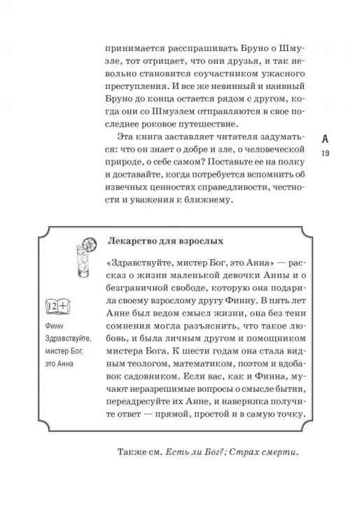 Выбор книги для ребенка - дело слишком важное, чтобы положиться на волю случая. Опытные библиотерапевты Элла Берту и Сьюзен Элдеркин создали своеобразный "литературный лечебник", чтобы помочь неравнодушным мамам, папам, бабушкам и дедушкам находить для детей те самые книги. Этот оригинальный медицинский справочник предлагает "книжную микстуру" практически для любого недуга - будь то аллергия, запор, боязнь подкроватных монстров, интернет-зависимость, развод родителей, переживания из-за переезда или разлука с друзьями... Среди лечебных средств - и хорошо знакомая классика, и новинки мировой детской и юношеской литературы. Незаменимая книга для родителей, которые любят читать и хотят привить эту любовь своим детям.