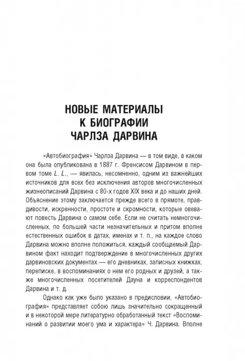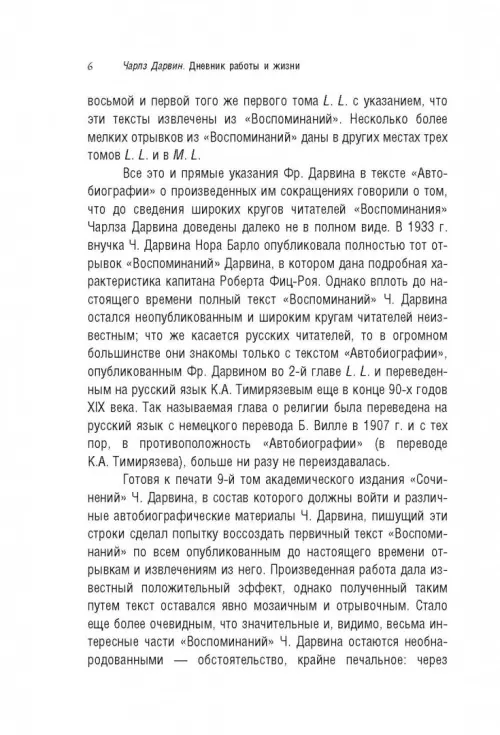 Большинству читателей известен текст автобиографии Чарлза Дарвина, отредактированный – и изрядно сокращенный – его сыном Френсисом, а после переведенный на русский К.А. Тимирязевым. Отдельно публиковались фрагменты, касающиеся религиозных взглядов натуралиста. В этом издании вниманию читателя предлагаются оригинальные – по черновикам восстановленные, наново переведенные и прокомментированные Самуилом Львовичем Соболем – воспоминания биолога и путешественника, а также его дневник. Как отмечает переводчик и автор комментариев, это самый полный биографический справочник об английском ученом. Кроме того, это обаятельный, искренний рассказ знаменитого студента старейших английских университетов, морского путешественника и свидетеля викторианской эпохи.