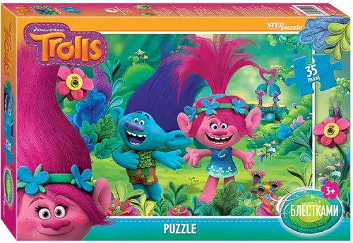 Макси пазл. Trolls. Глиттер, 35 элементов