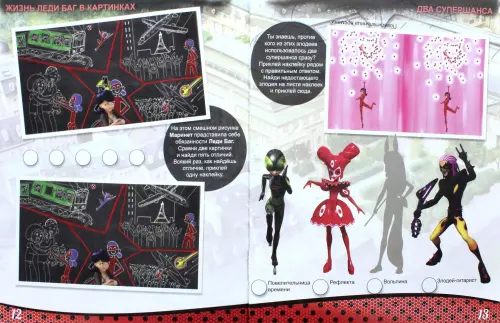 Серия развлекательных и развивающих книг с наклейками на основе персонажей популярного сериала «Леди Баг и Супер-Кот». В сериале рассказывается о девочке Маринет, которая живет в Париже и помогает родителям в булочной. Казалось бы, Маринет – обычная школьница, но с помощью волшебного талисмана она превращается в супергероиню Леди Баг. Вместе со своим напарником Супер-Котом они защищают Париж от злодеев. В каждой книге вы найдете игры на внимание, лабиринты, головоломки, раскраски, красочные наклейки, связанные с одной из тем сериала: дружба, верность, вера в себя, победа над врагом, супергерои и суперспособности, Париж и его обитатели.